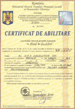 Desfășurarea unui ansamblu de activități care au ca scop prevenirea riscurilor profesionale, protecția sănătății lucrătorilor la locul de muncă, în conformitate cu Legea Securităţii şi Sănătăţii în Muncă nr. 319/2006, şi H.G. 1.425/2006 (actualizată şi modificată prin H.G. 955/2010)